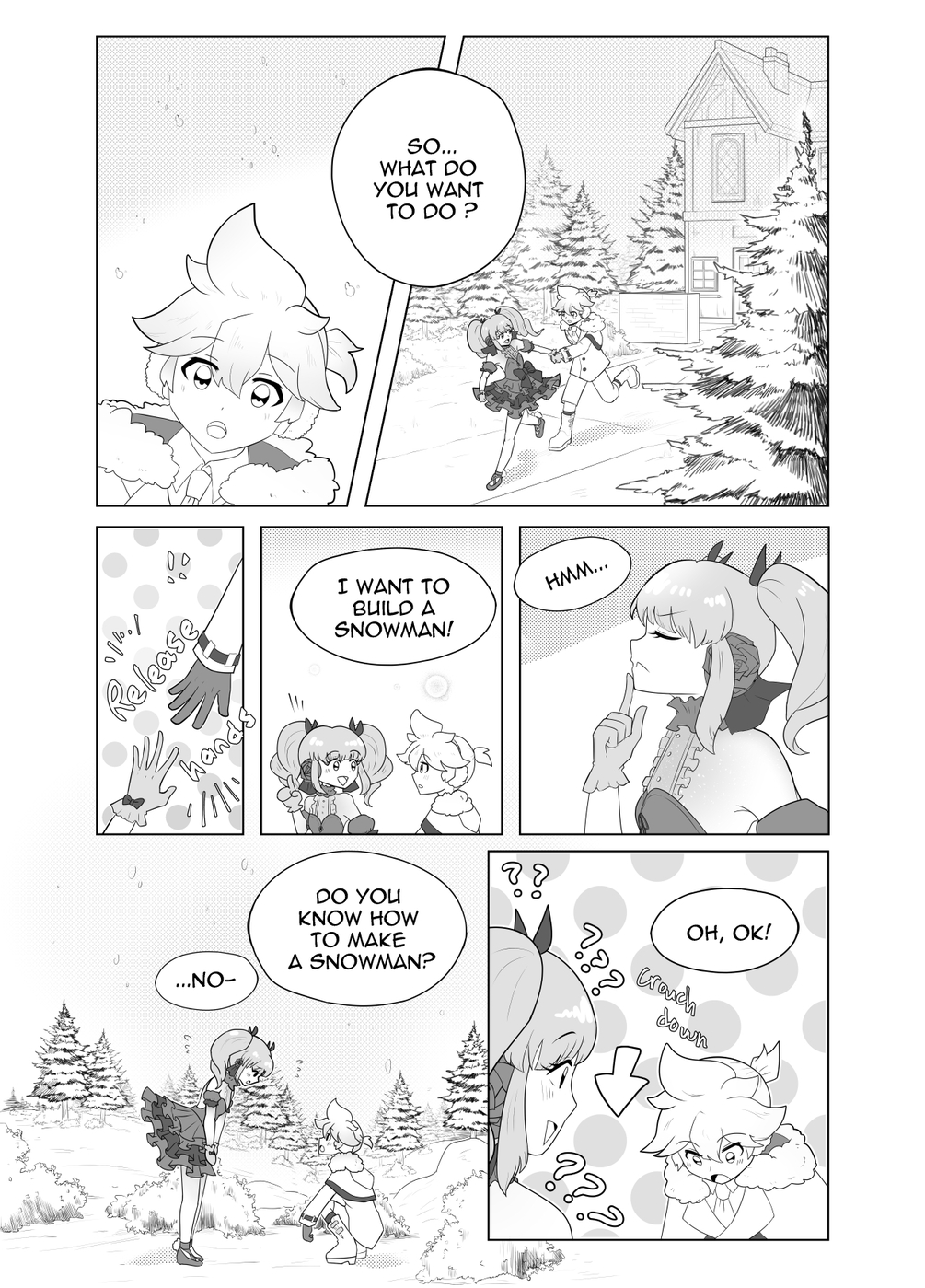 Mainly it's a simple slice of life, pure fluff, no thoughts head empty, just a fun time of two Len and Miku modules- Ice Fog and Etoile! Special appearance of Snow Miku 2014 and 2013.